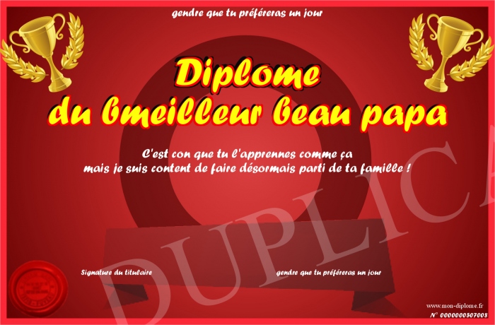 Envoyez par email votre Diplôme du bmeilleur beau papa personalisé
