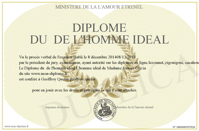 Envoyez par email votre Diplôme du de l'homme idéal personalisé