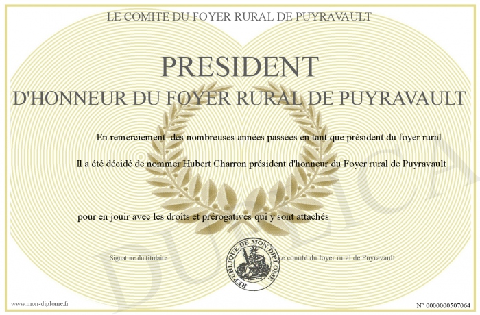 Envoyez par email votre Président d'honneur du foyer rural de Puyravault personalisé