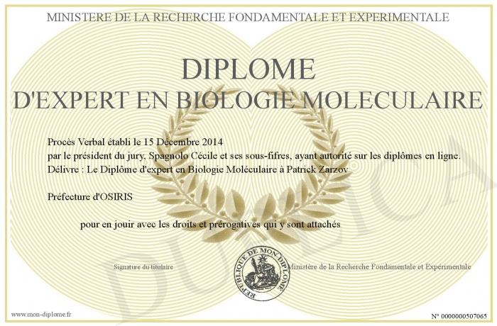 Envoyez par email votre Diplôme d'expert en Biologie Moléculaire personalisé