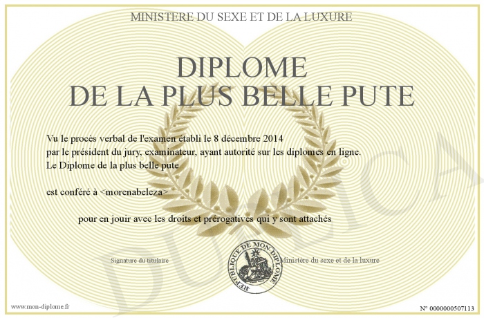 Envoyez par email votre Diplôme de la plus belle pute personalisé