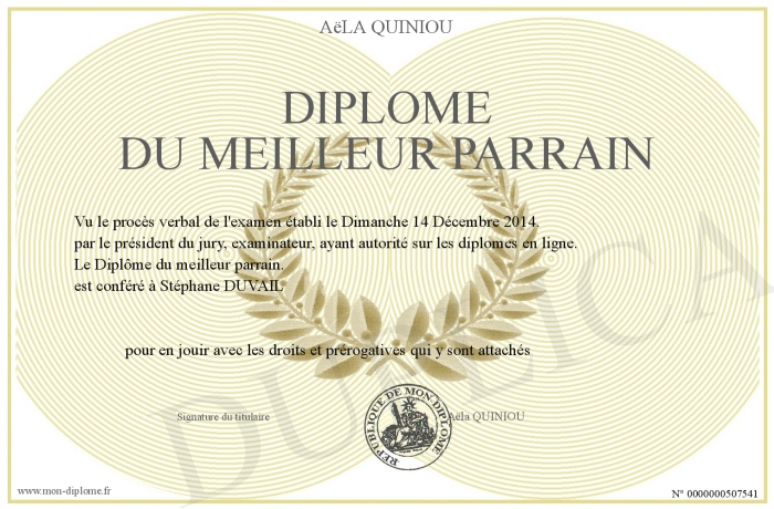 Envoyez par email votre Diplôme du meilleur parrain personalisé