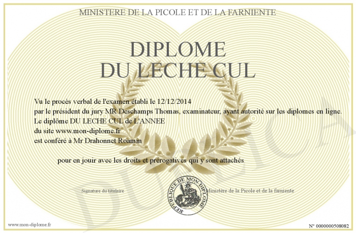 Envoyez par email votre Diplôme du LECHE CUL personalisé
