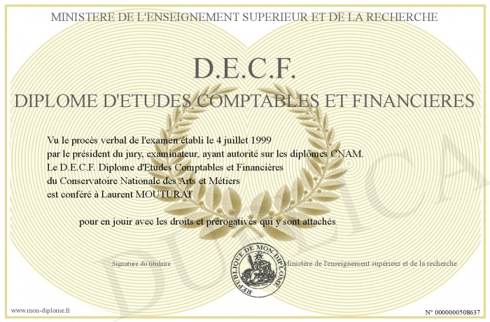 • D.E.C.F. Diplôme d'Etudes Comptables et Financières