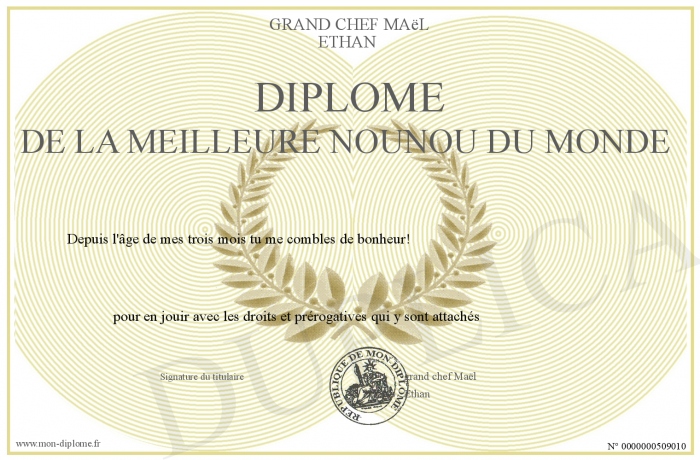 Envoyez par email votre Diplôme de la meilleure nounou du monde personalisé