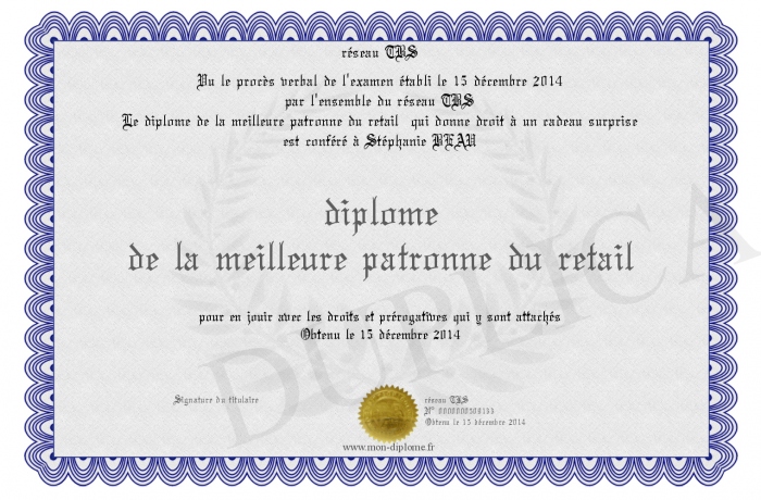 Envoyez par email votre diplôme de la meilleure patronne du retail personalisé