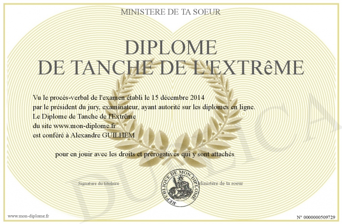 Envoyez par email votre Diplome de Tanche de l'Extrême personalisé