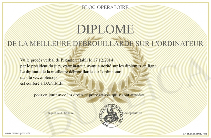 Envoyez par email votre Diplôme de la MEILLEURE DEBROUILLARDE sur l'ordinateur personalisé