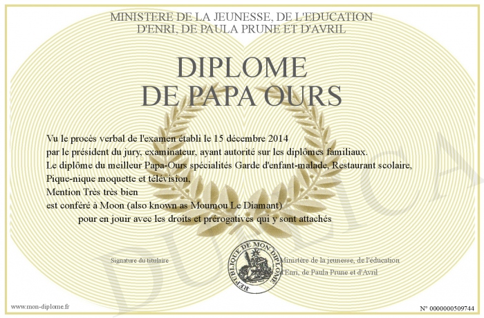 Envoyez par email votre Diplôme de Papa Ours personalisé