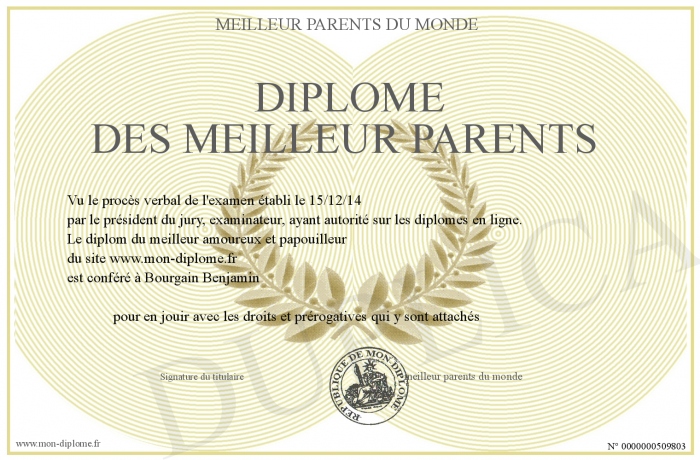 Envoyez par email votre Diplôme des meilleur parents personalisé