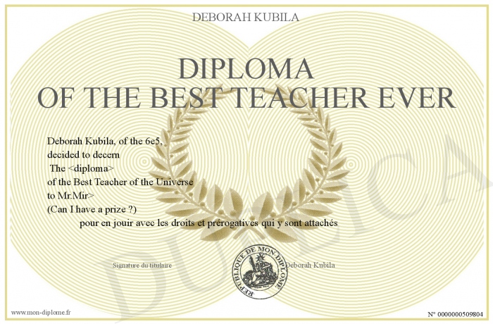 Envoyez par email votre Diploma of the best Teacher ever personalisé