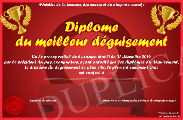 Envoyez par email votre Diplôme du meilleur déguisement personalisé