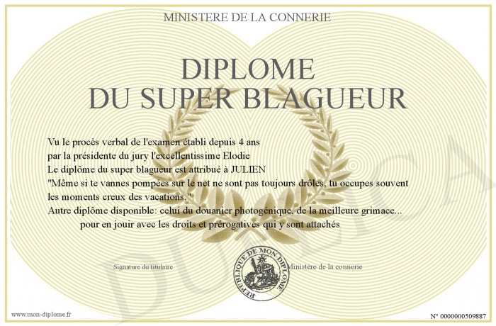 Envoyez par email votre Diplôme du super blagueur personalisé
