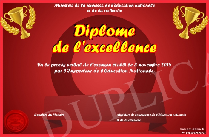 Envoyez par email votre Diplôme de l'excellence personalisé