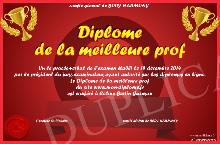 Envoyez par email votre Diplôme de la meilleure prof personalisé