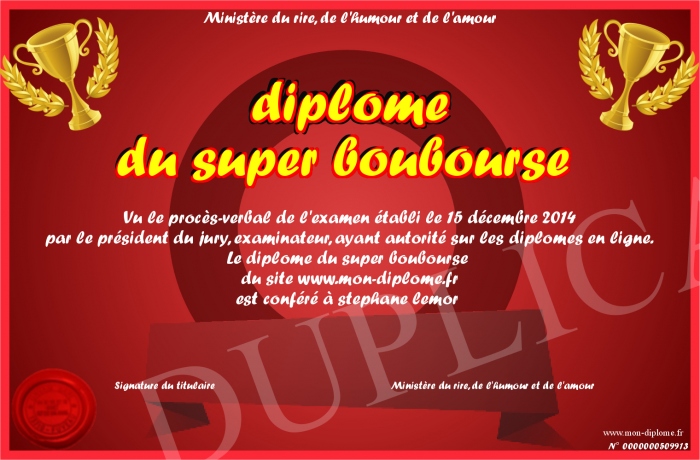 Envoyez par email votre diplome du super boubourse personalisé