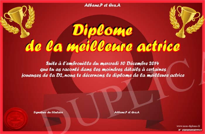 Envoyez par email votre Diplôme de la meilleure actrice personalisé