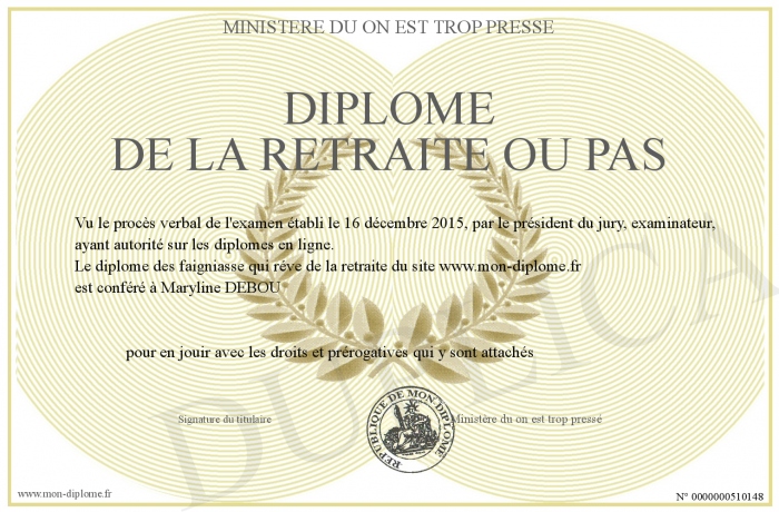 Envoyez par email votre Diplôme de la retraite OU pas personalisé