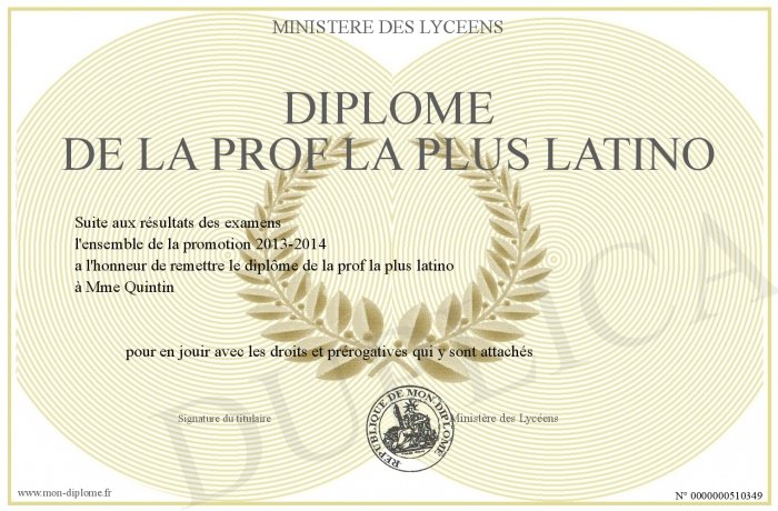 Envoyez par email votre Diplôme de la prof la plus latino personalisé