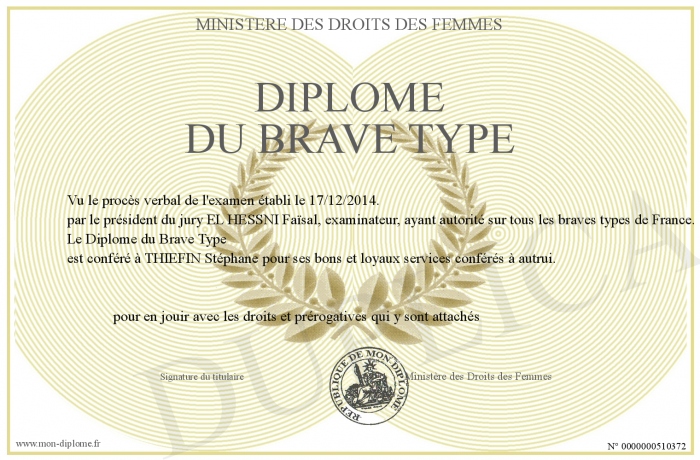 Envoyez par email votre Diplôme du Brave Type personalisé