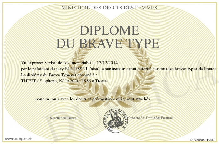 Envoyez par email votre Diplôme du Brave Type personalisé