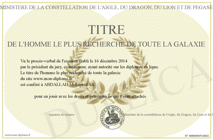 Envoyez par email votre titre de l'homme le plus recherché de toute la galaxie personalisé