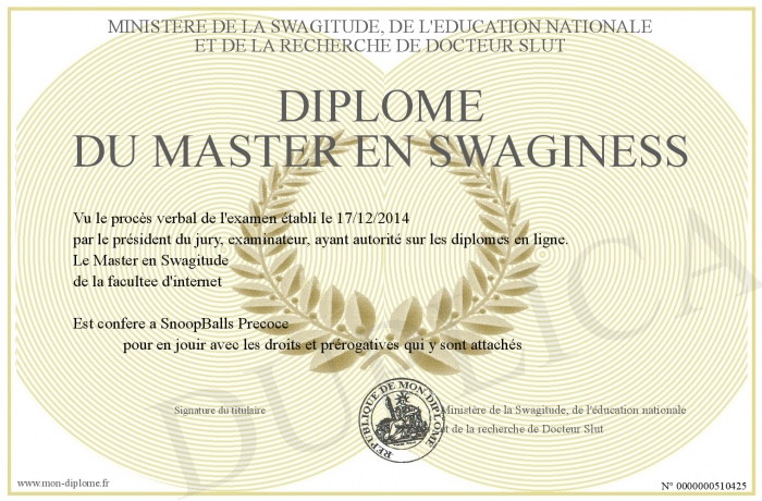Envoyez par email votre Diplôme du Master en Swaginess personalisé
