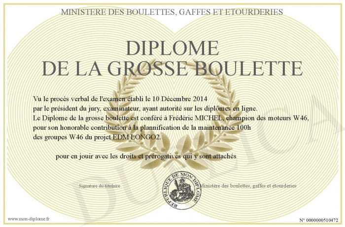 Envoyez par email votre Diplôme de la grosse boulette personalisé