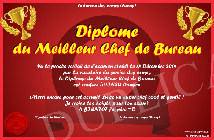 Envoyez par email votre Diplôme du Meilleur Chef de Bureau personalisé