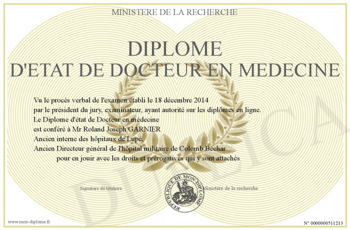 Envoyez par email votre Diplome d'état de Docteur en médecine personalisé