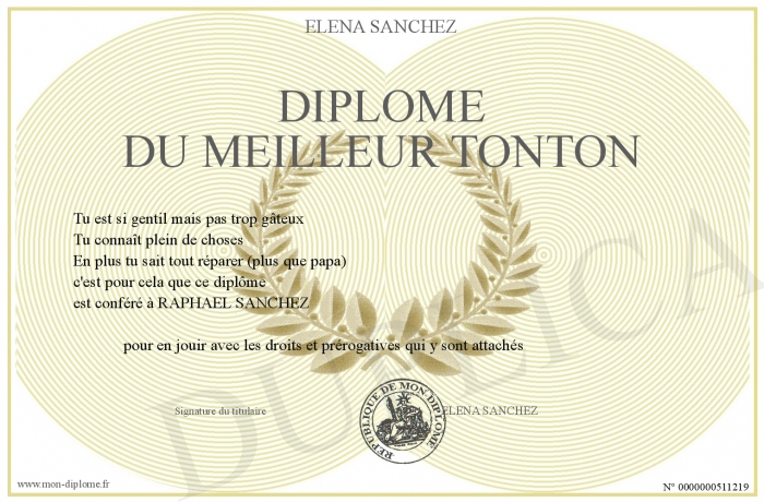 • Diplôme du meilleur tonton