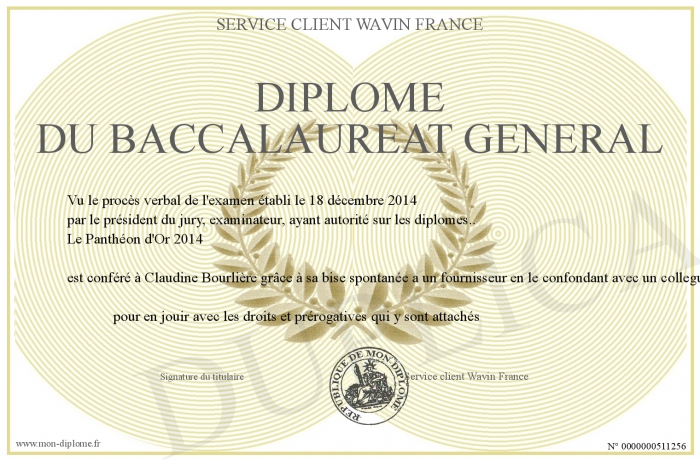 Envoyez par email votre Diplôme du baccalaureat général personalisé