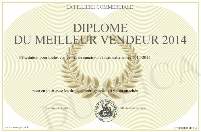 Envoyez par email votre Diplome du meilleur vendeur 2014 personalisé