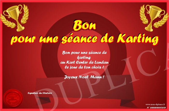 Envoyez par email votre Bon pour une séance de Karting personalisé