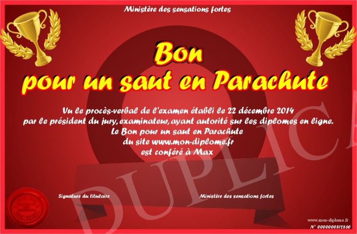 Envoyez par email votre Bon pour un saut en Parachute personalisé