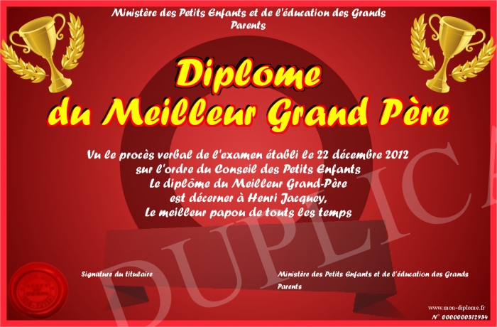 Envoyez par email votre Diplôme du Meilleur Grand Père personalisé