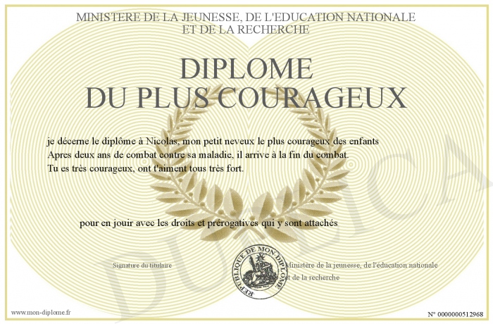 Envoyez par email votre Diplôme du plus courageux personalisé