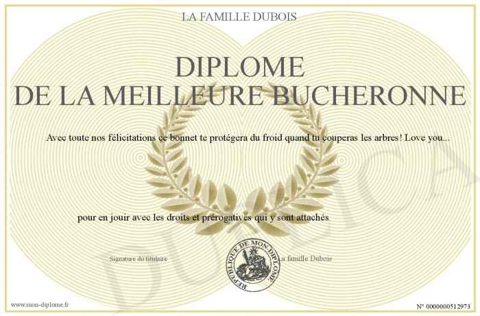 Envoyez par email votre Diplôme de la meilleure bucheronne personalisé