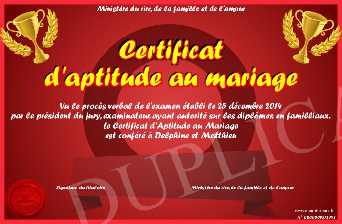 Envoyez par email votre Certificat d'aptitude au mariage personalisé