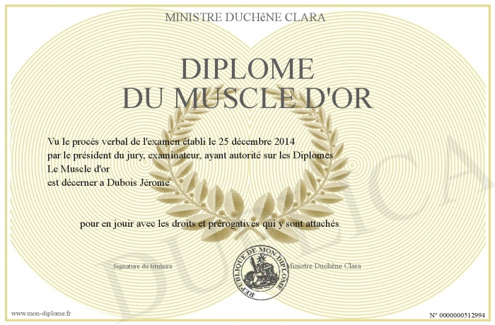 Envoyez par email votre Diplome du muscle d'or personalisé