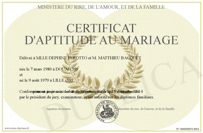 Envoyez par email votre certificat d'aptitude au mariage personalisé