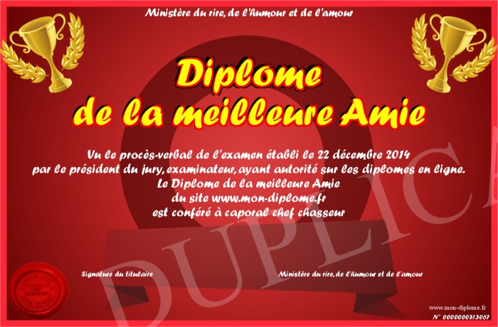 Envoyez par email votre Diplome de la meilleure Amie personalisé
