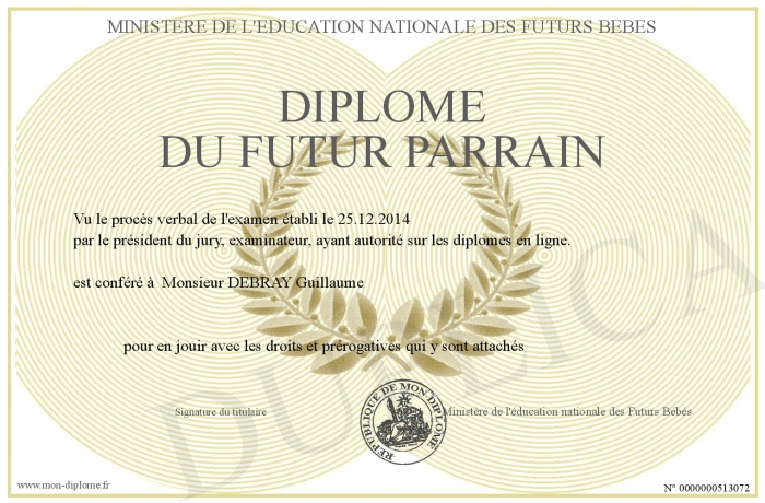Envoyez par email votre Diplôme du Futur PARRAIN personalisé
