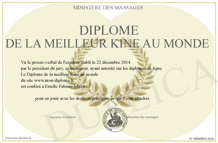 Envoyez par email votre Diplôme de la meilleur Kiné au monde personalisé