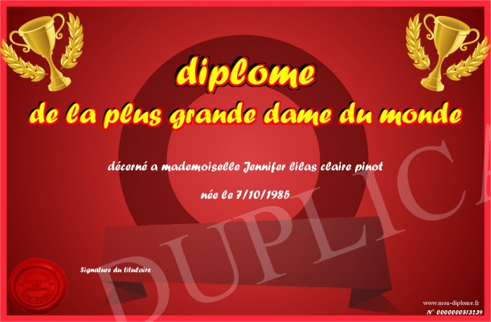 Envoyez par email votre diplôme de la plus grande dame du monde personalisé