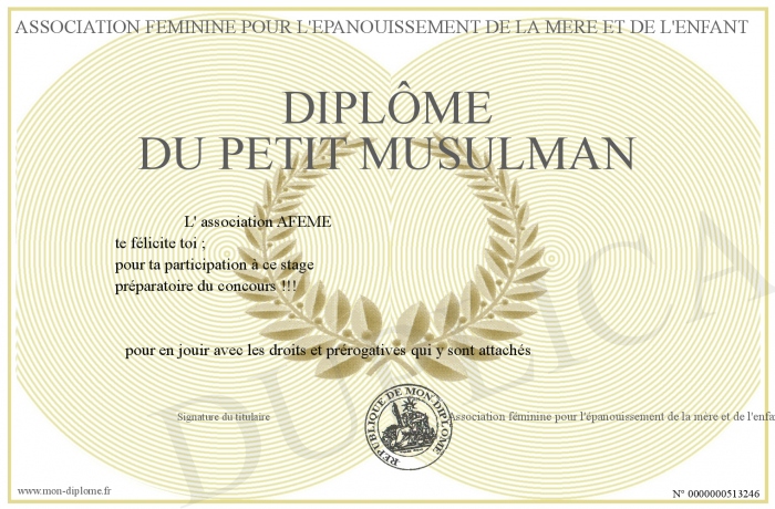 Envoyez par email votre DIPLÔME DU PETIT MUSULMAN personalisé