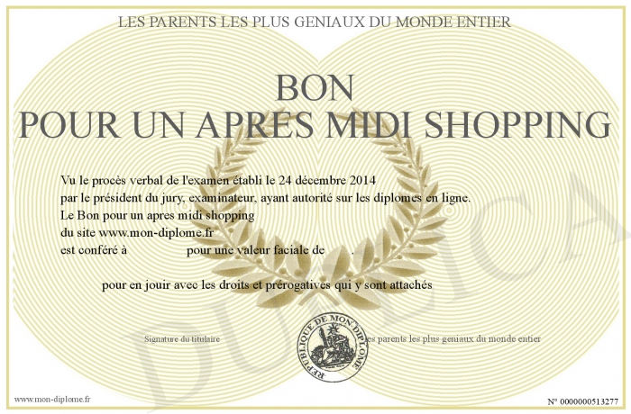 Envoyez par email votre Bon pour un apres midi shopping personalisé
