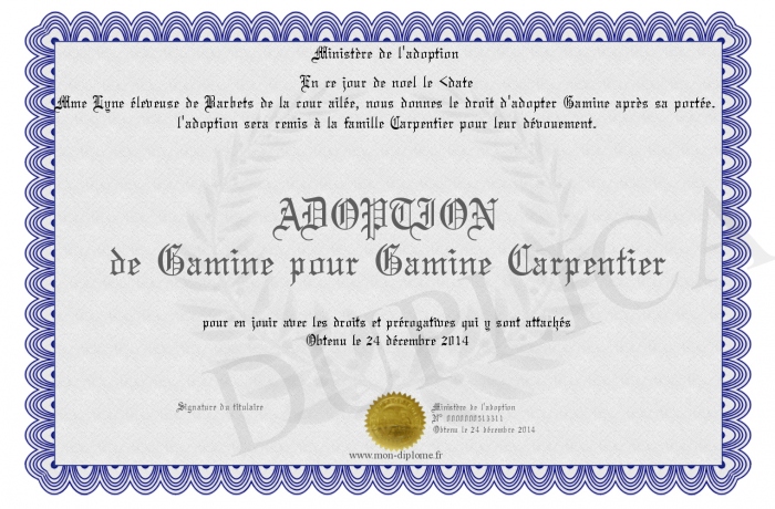 Envoyez par email votre ADOPTION de Gamine pour Gamine Carpentier personalisé