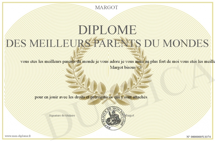 Envoyez par email votre diplome des meilleurs parents du mondes personalisé