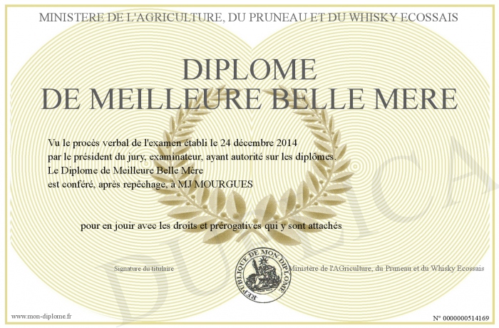 Envoyez par email votre Diplôme de Meilleure Belle Mère personalisé